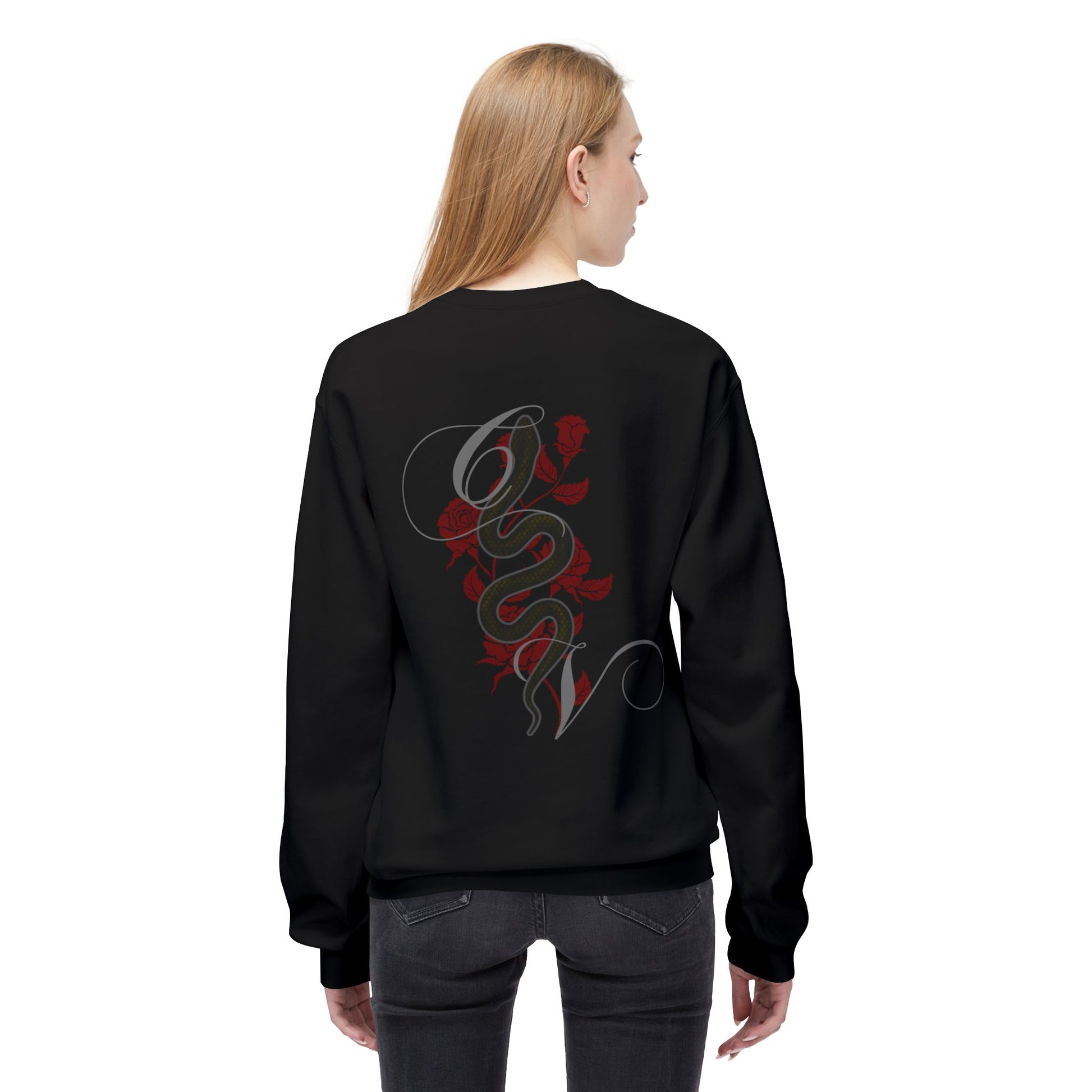 This cozy crew features a front and back design!